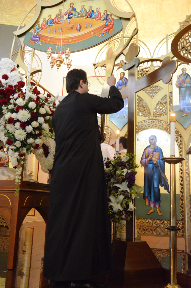 Father Angelo Artemas takes the icon of Christ down from the cross
