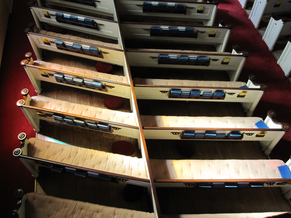 This is a Frank Lloyd Wright blog, but, heck, it’s mine, so I can post other things, too! I was struck by the sun at 10 a.m. when I looked in the sanctuary of the historic First Presbyterian Church in Racine today. The wide shot with the piano is what I first saw. That drew me to the tighter shots. I had biked to the church. I have been commissioned to write a book for their 175th anniversary and was there for an editing meeting, so I didn’t have “real” cameras and lenses. These were all shot with my “bike camera,” a pocket Canon SD 780 IS point and shoot. I picked that model a few years ago because it has a viewfinder. Thanks to Michael Zacks of Zacks Camera Repair in Providence, RI for fixing the zoom a month ago!