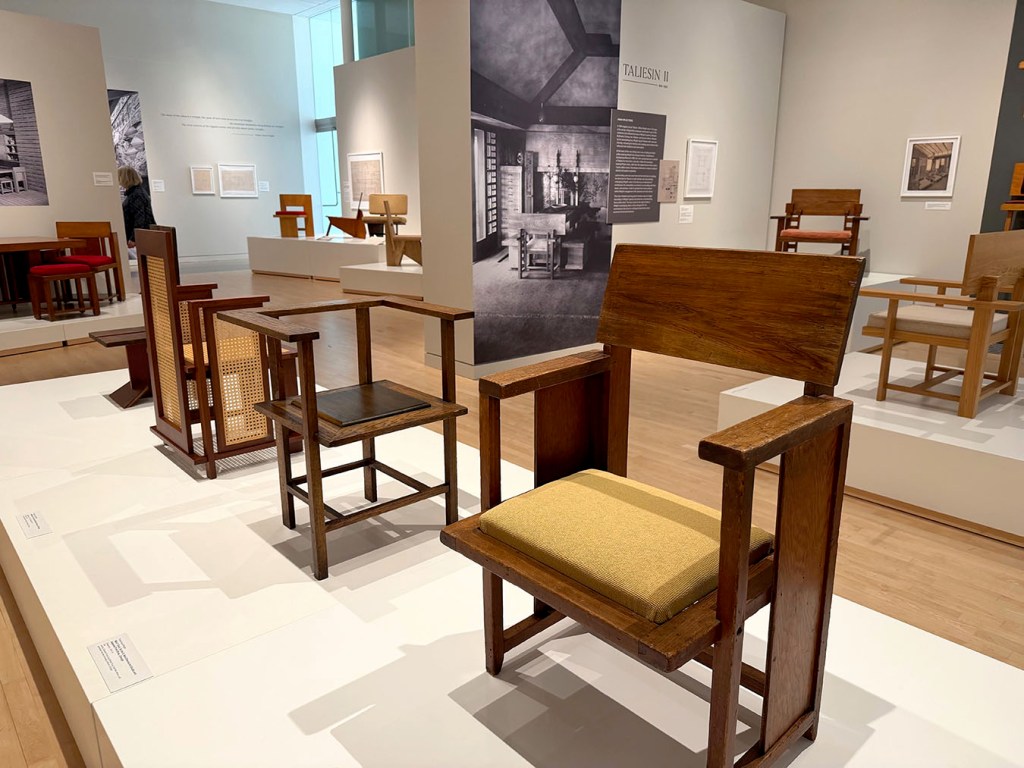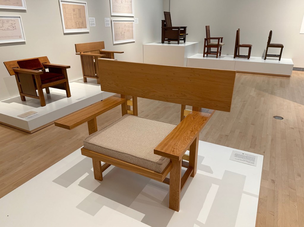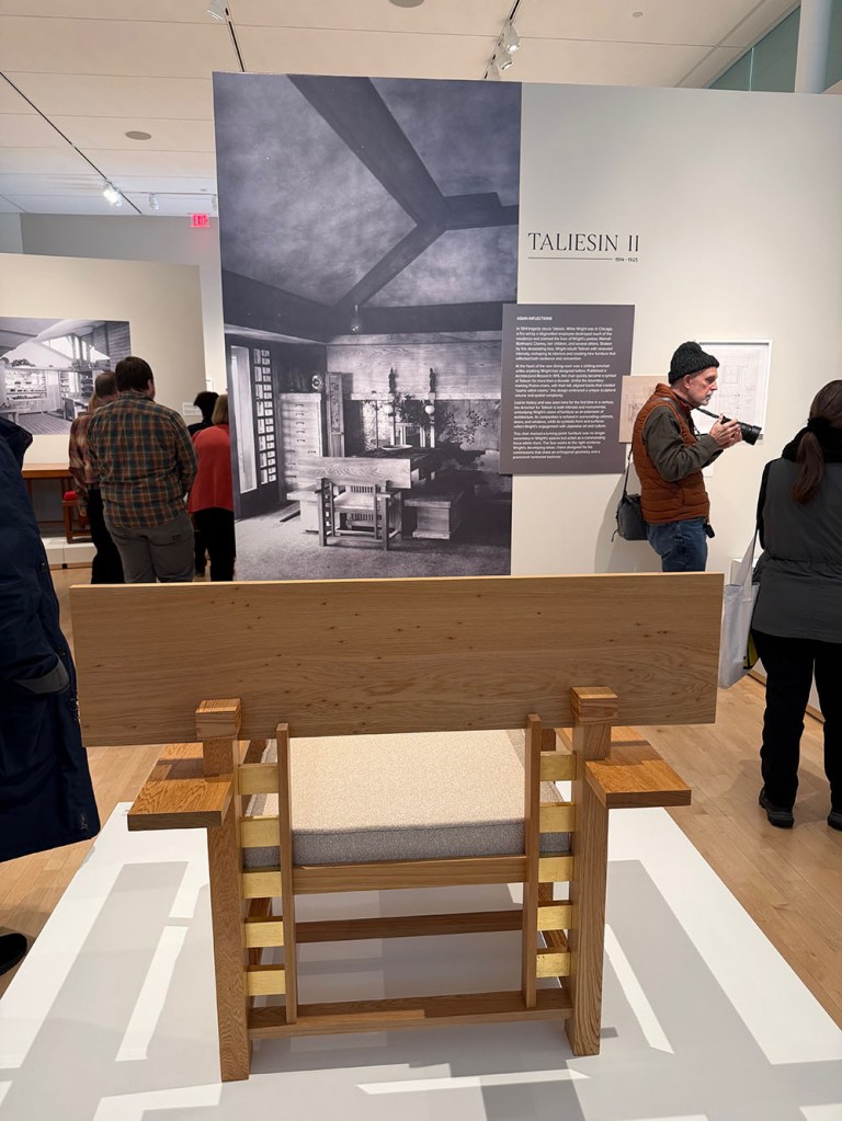 There have been only three research-based books on the subject – three out of how many hundred books about Wright? That was the impetus for the “Frank Lloyd Wright- Modern Chair Design” exhibition at the Museum of Wisconsin art (MOWA) in West Bend, Wisconsin. The exhibit ran from October – January.