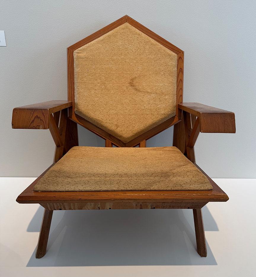Above, Ten pieces make up the famous “Origami” Armchair for Taliesin West, Scottsdale, Arizona, designed 1946
