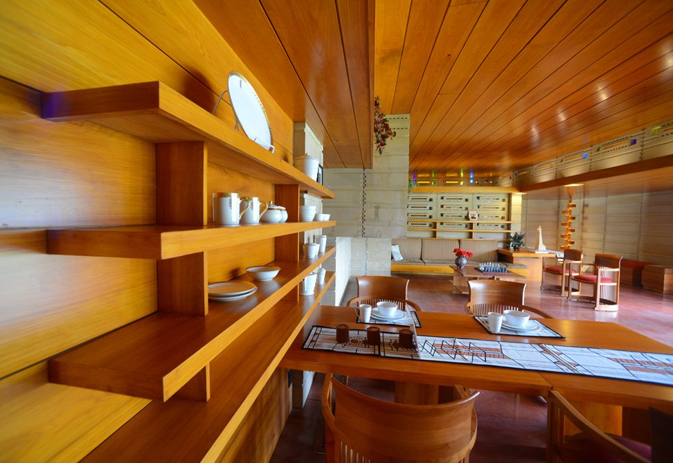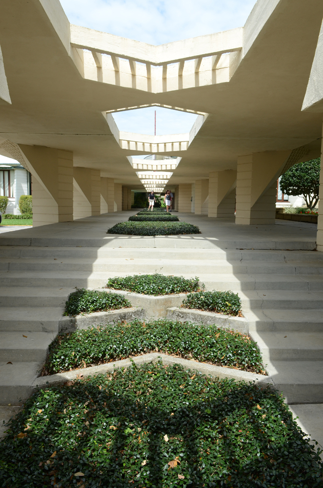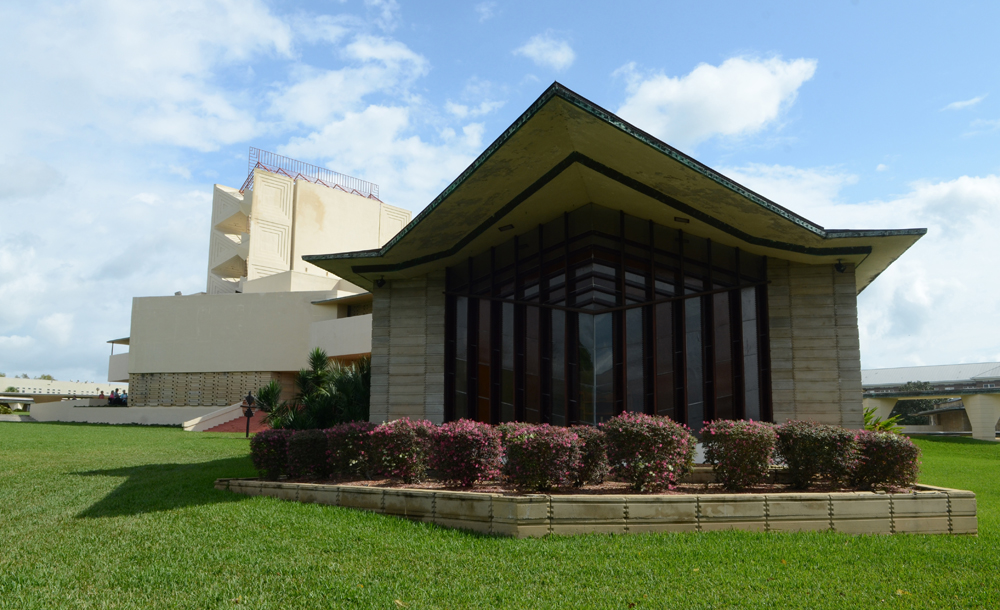 Bill missed an immersion into the World of Wright in the early 1950s, when he was studying for his Master’s degree at Emory College in Atlanta. He had applied for a position at Florida Southern College in Lakeland. Dr. Ludd Spivey, a teetotaler who commissioned Wright to design the college campus in 1938 (10 Wright-designed buildings were ultimately constructed), was in Atlanta. He invited Bill to a lunch interview. Dr. Spivey said, “Before we begin, I must ask you if you drink alcohol.” Bill replied, “I enjoy a drink now and then.” The interview was over. Bill was on his own for lunch after Dr. Spivey rose from the table, and declared “There is no point in our going on any further.” I told him I was glad he enjoyed a drink “now and then.” If he had gone to Florida Southern, I said, he may not have come to Wingspread, and I would not have met him.