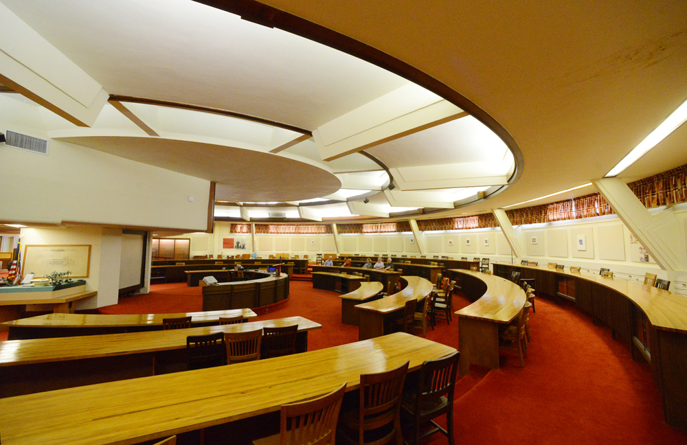 Bill told me that he had never seen a building designed by Wright until he came to Racine in 1980 for an interview to become the second president of The Johnson Foundation at Wingspread, the Johnson home that Karen grew up in. Wingspread was designed by Wright in 1937. The interview, with Karen’s brother, Sam, the president of SC Johnson, took place in Wright’s landmark SC Johnson Administration Building (1936). Bill summed up his initial reaction to Wright’s architecture in just three words, “I was smitten.”