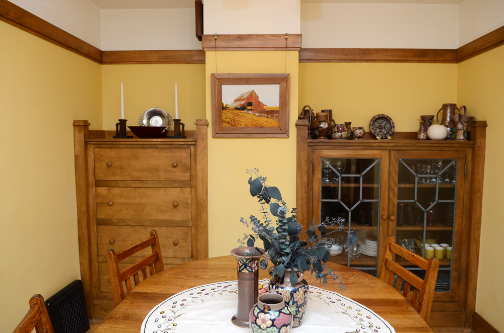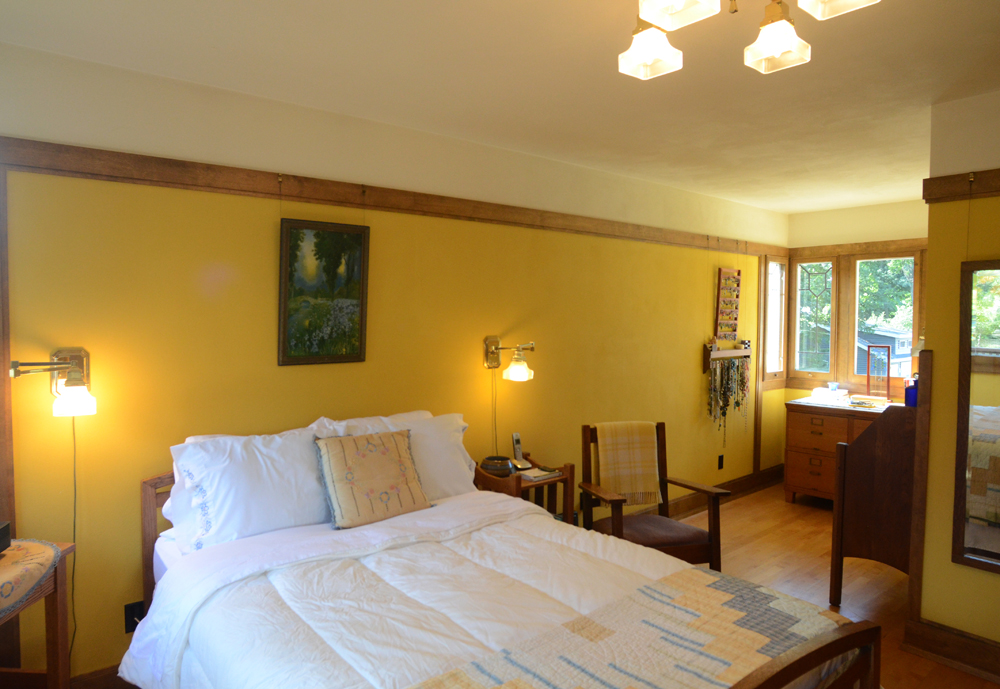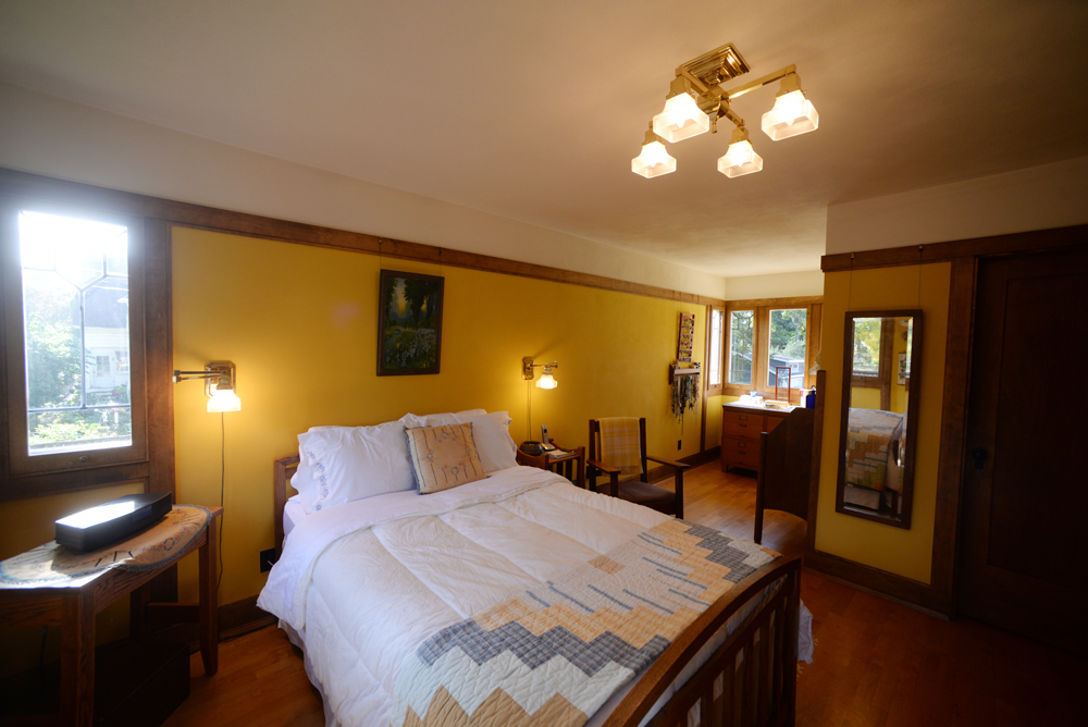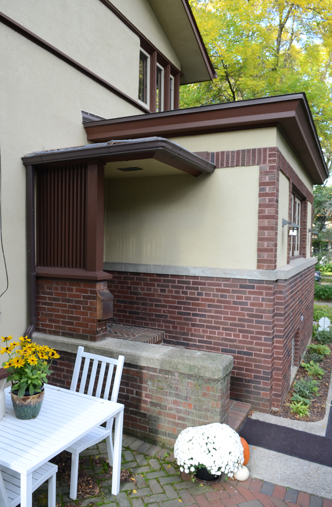 There were many difficult discussions at board meetings about what it would mean for the organization to become a steward of a Wright property rather than only fulfilling its founding mission of promoting Wright tourism and awareness and education about Wright’s work in Wisconsin. Then came the purchase of the Two Family Flat C duplex at the end of the block. And then came the purchases of two more of the duplexes (one of which is the world’s only aluminum sided Frank Lloyd Wright structure…the siding was added in 1968). The fourth duplex is independently owned. It was converted into a single family home in the 1980s and is available for overnight rentals through Vrbo.