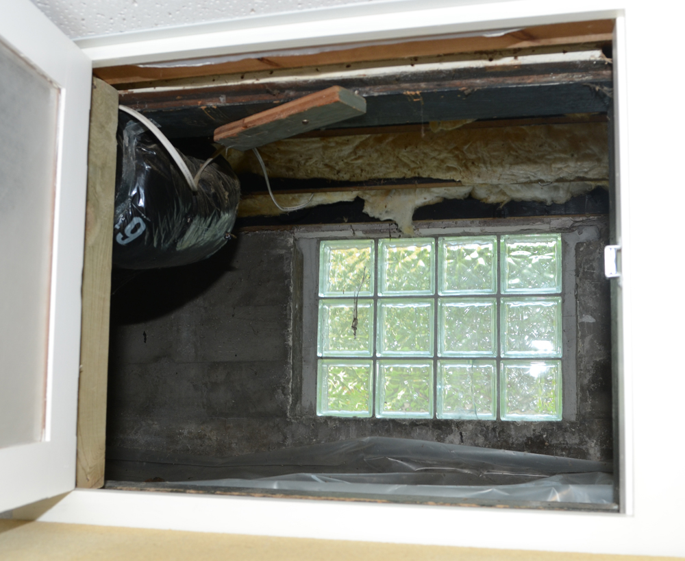 The original open porch was enclosed, possibly when then exterior veneer was added: