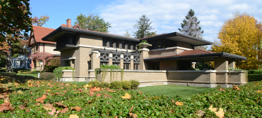 It is June 8, Frank Lloyd Wright’s 157th birthday. Social media sites devoted to Wright are abuzz every year with birthday tributes. Sometimes I have something to post on “the day,” but not always. (June 8, 1968 or 6.8.68, my high school graduation day, is more significant to me personally, but that’s another story). I had nothing in mind to post this year until I took my customary morning bike ride and passed his Thomas P. Hardy House and the SC Johnson Administration Building and Research Tower which are on my bike route in Racine. I thought back to the fall of 2022 when my alma mater, Lake Forest (Illinois) College, honored me with a 50th anniversary Homecoming dual photo exhibit. One gallery was devoted to my career as a photojournalist, the other to my Wright-related photography. As I pedaled down Main Street this morning I decided to share the latter with you. The thesis of the exhibit was to present “Wright in the Abstract,” rather than only in record shots or head-on photos of his work. My challenge was to cull a few dozen photos of several thousand. The photos are in chronological order, based on the year of the commission, not the year of completion.