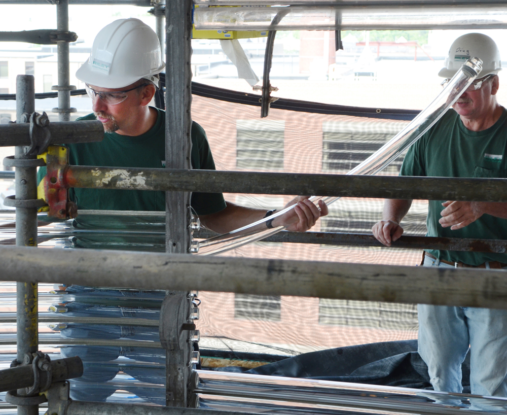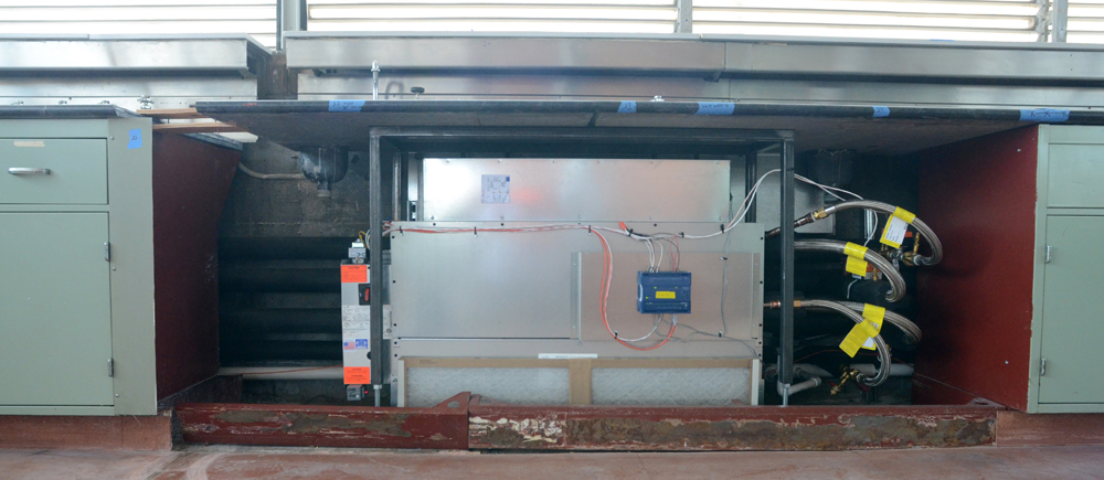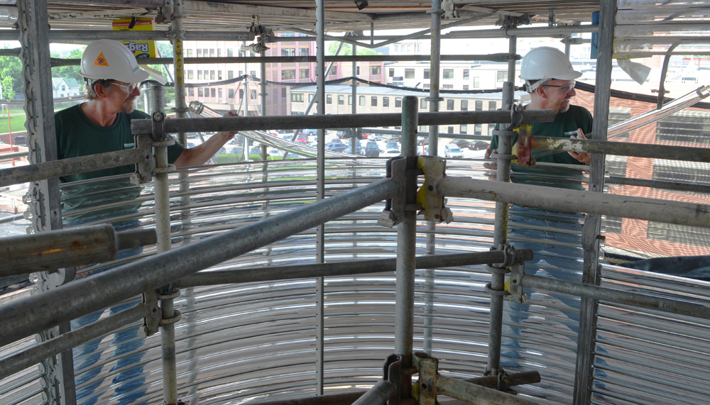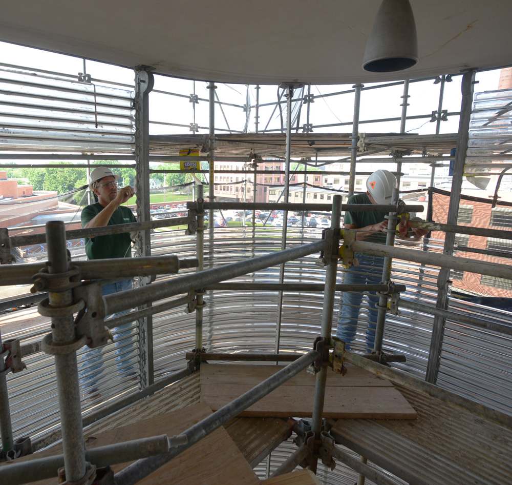 Chemists complained that it could be very warm or very cold in the Tower. Heating and air conditioning systems are being installed on the two restored floors for the comfort of visitors They are being hidden under the soapstone laboratory counters.