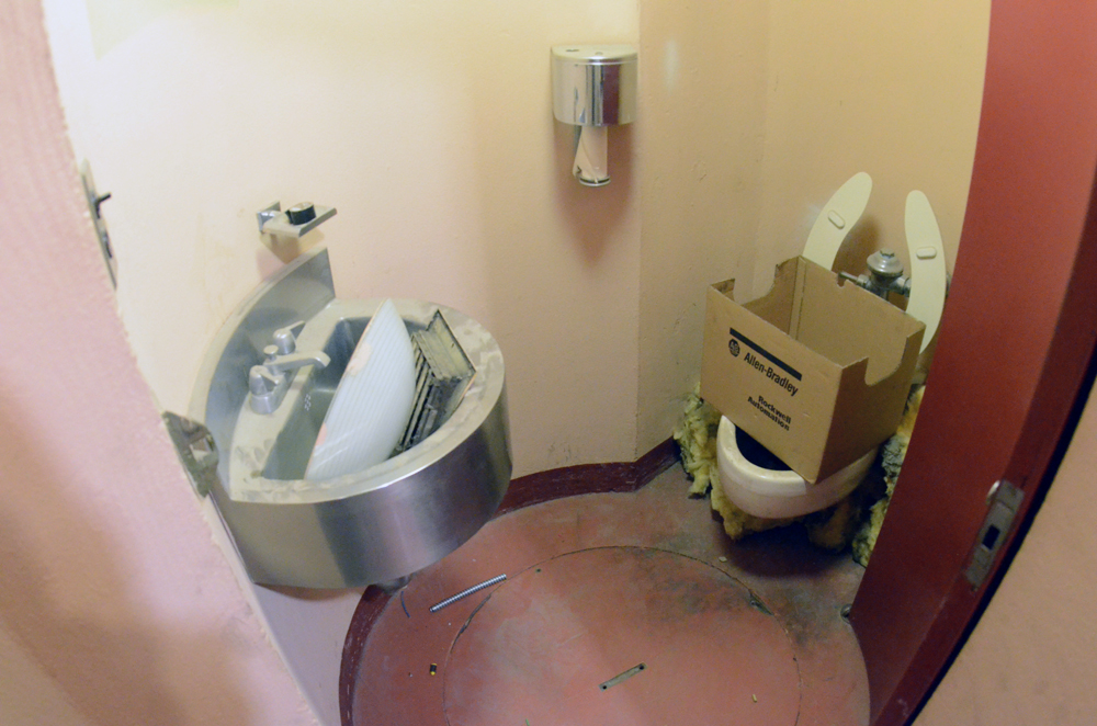 Even the tiny triangular bathrooms on the core on 3 Main and 3 Mezz will be restored, and open to view by visitors. Their design includes sliding Cherokee red doors.