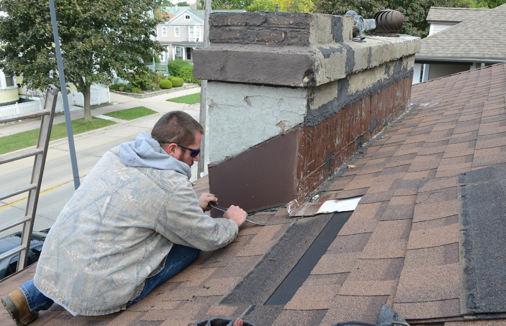 Gene Szymczak, below, center, became the new steward of Frank Lloyd Wright’s Thomas P. Hardy House in Racine in September. The responsibility of owning the house, and enjoying the restoration process, sometimes includes discovery of unexpected repair challenges.