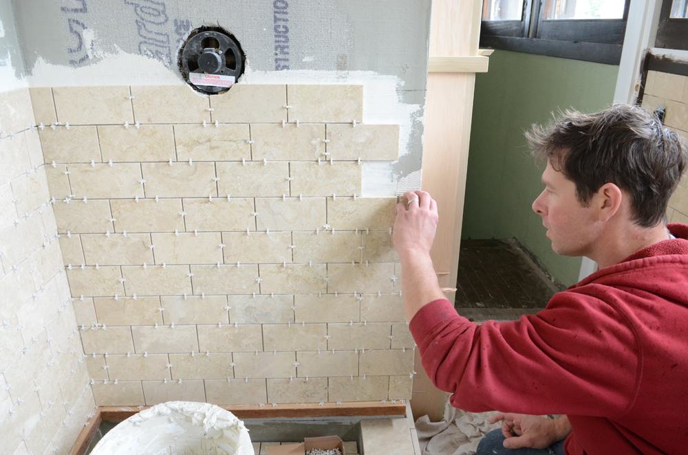 Gordie Bishop built a new framework for Lemke’s nephew, Sean Doyle, to cover with board, rather than lathe, before Lemke plasters the courtyard walls: