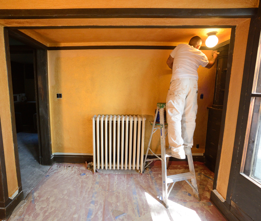The dining room was replastered, as needed, by Paul Lemke and painted by Daniel Bishop: