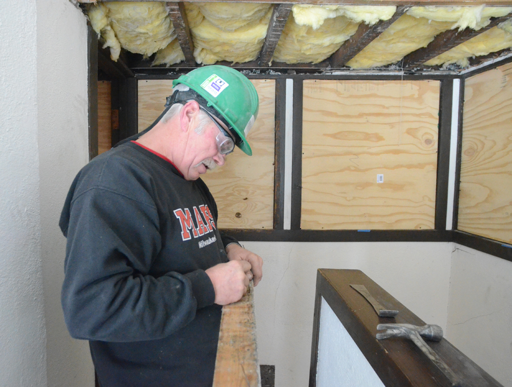This will be Gene’s home. It is not a public building that must be completed by a certain deadline. Most of the house will be put back together they way Gene bought it, once repairs are completed. The kitchen and bathroom will be more contemporary, to reflect that 1319 Main Street will be his home, not a house museum.