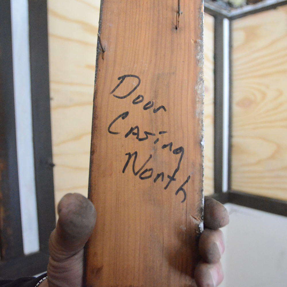 Grant marked pieces of trim as he removed them from the upstairs hallway so they can be replaced properly: