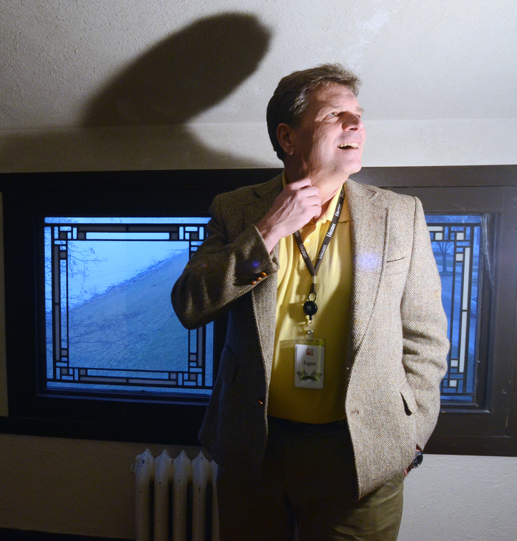 A year is generally not a significant time in the history of a 110-year old house. However, this past year has been perhaps the most important, if not dramatic, year in the history of the Frank Lloyd Wright house at 1319 Main Street. Thomas P. Hardy, a Racine attorney, moved into the house that Wright designed for him, in 1906. Hardy was 73 when he lost his beloved home, first at sheriff’s auction in 1937, and then by order of the Wisconsin Supreme Court in 1938. The house has had six owners since then. The newest steward of the house, Eugene Szymczak, bought it a year ago from Jim and Margaret Yoghourtjian, who owned it since 1968. Szymczak undertook a full restoration of the house. Some of the work, including replacing aging wood and refinishing the house in its original colors inside and out, is relatively routine. Other work required solutions unique to the house. An example was the placement of four floor-to-ceiling columns in the sub-basement to stabilize the Main Street side of the house.