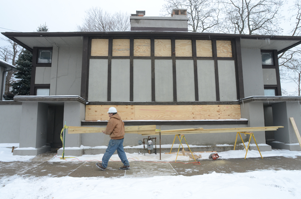 The first tours of Frank Lloyd Wright’s Thomas P. Hardy House in decades will be held Saturday April 27. The house, which is perched on a bluff above Lake Michigan in Racine, Wisconsin, has been undergoing significant restoration since Eugene Szymczak bought it in September (photos of the restoration are in two previous posts, below).