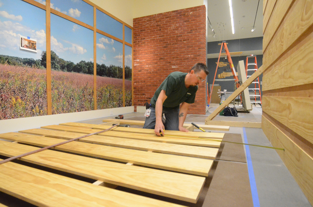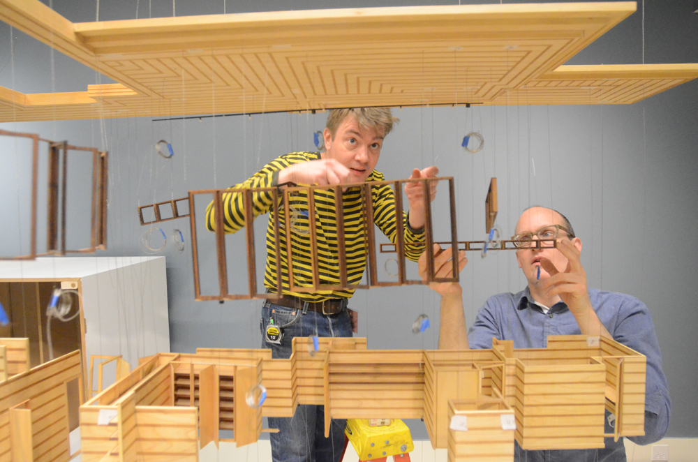 I happened to walk to the 2018 conference meetings at Monona Terrace in Madison from the hotel with Roland one morning. The hallways in Monona Terrace are lined with photographs by Pedro Guerrero, including this one of David Henken, Rolland, and Wright. He pointed the photo out to me and graciously posed for me next to it: